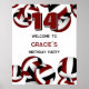 Cette affiche d'accueil de fête d'anniversaire à thème volleyball est entièrement personnalisable et présente des boules de volleyball en noir et blanc disposées au hasard, sur lesquelles vous pouvez personnaliser votre message personnalisé et l'âge de l'enfant, ou customiser le texte en fonction de votre événement - par katz_d_zynes