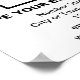 Poster que vous pouvez customiser pour mettre votre nom d'entreprise. Vous pouvez l'utiliser comme matériel de marketing pour annoncer votre entreprise ou pour promouvoir votre marque auprès de clients ou de clients. Affiche personnalisable que vous pouvez utiliser pour développer la sensibilisation de marque. Customisez-le et affichez-le sur le mur de votre bureau, de votre entrée, de votre réception, de votre hall ou dans des endroits appropriés visibles aux clients ou aux clients. Les dessins sont des textes noirs en forme d'arrière - plan et de carré blanc. Pour customiser cette affiche, téléchargez votre logo d'entreprise, tapez votre nom d'entreprise ou d'entreprise, votre adresse, votre numéro de téléphone, votre courriel et votre site Web ou votre page de médias sociaux. Veuillez vérifier l'apparence après avoir téléchargé le logo et tapé des textes. Si l'apparence vous plaît, vous pouvez passer votre commande maintenant. Si vous avez besoin de redimensionner et déplacer le logo et les textes pour s'adapter à cette affiche ou à d'autres formes et tailles que vous choisirez, veuillez modifier l'outil de conception. Vous pouvez également effectuer d'autres modifications en fonction de l'apparence que vous préférez dans l'outil de conception, comme changer la couleur de l'arrière - plan de l'affiche, la couleur de la police et le style de police.