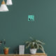 Un design des années cinquante en bleu turquoise et noir. La silhouette stylisée d'une femme se détache sur un salon chaise. À côté d'elle se trouve une table avec un seul verre à martini. L'arrière - plan est turquoise et il y a une ligne et un motif carré devant la femme dans un turquoise foncé