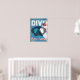 Key Largo Florida vintage scuba mask poster design. "Un bleu et blanc diver flag background with a retro scuba mask and word "dive" at the top.