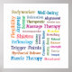 Poster des mots descriptifs de massothérapie. Thérapeutique, Massage Thérapie, Points Déclencheurs, Calmer, Respirer Facile, Myofascial, Structurale, Restauration, Équilibre. Customisez avec un arrière - plan couleur ou votre propre image arrière - plan.