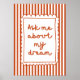 Améliorez votre espace grâce à cette impression Burnt Orange vibrante ! Avec une citation inspirante de Ask Me About My Dream, cette affiche est l'ajout parfait à votre décor maison.