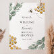 Accueillez vos invités à votre soirée de mariage avec ce beau poster, mettant en vedette des ruches aquarelles, des feuilles d'eucalyptus et une abeille dorée. Ajoutez le nom de l'invitée d'honneur, la date de la soirée et le texte de bienvenue personnalisé à l'aide des champs fournis.
