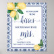 Carrelage bleu méditerranéen Citrons Combien de baisers pour le Bientôt être Mme Game carte nuptiale Douche. Cliquez sur "Modifier la conception" pour personnaliser ou modifier la mise en page (modifier le libellé, la couleur de la police, le style de police) **Carte jumelée disponible - Vérifier la collection pour tous les modèles correspondants ! COMMENT JOUER : Les invités devineront combien de baisers sont dans un bocal.