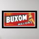 étiquette vintage de caisses de fruits pour Buxom Brand Melons de Yuma, Arizona.
