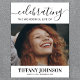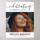 Affiche mémorial moderne présentant une grande photo de la personne que vous commémorez, un titre qui se lit "célébrant la merveilleuse vie de", leur nom et dates de naissance et de décès.