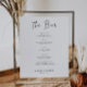 Ce panneau de menu mariage imprimable do-it-yourself une police manuscrite et un design minimaliste moderne. Ce moderne Mariage Bar Menu Sign Modèle est parfait pour vous si vous cherchez un joli et facile à utiliser Signes Mariages modifiables.