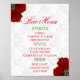 Poster Menu du Bar - Mariage Fleur Rose Rouge Profond