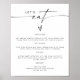 Cette affiche de menu présente une police manuscrite bohème moderne et un design minimaliste simple. La combinaison de couleurs simple noir et blanc en fait l'ajout parfait pour tout événement. Utilisez ce menu pour votre réception de mariage, douche de mariée, fête de retraite, etc. Modifiez *la plupart* de la formulation pour répondre à vos besoins.