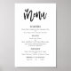 Menu Mariage Tendance Artsy Script Text Only. Un ensemble informel de typographie en noir et motif cardiaque pour le titre principal Menu complétant le reste du texte que vous pouvez facilement personnaliser.