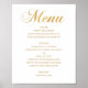 Poster Menu mariage or pour le dîner. Élégant script simp