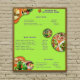 En tant que propriétaire de restaurant ou de snack, vous souhaitez sûrement présenter les plats que vous proposez à vos clients de manière engageante. Ce menu et cette liste de prix sont là pour aider les entreprises qui promeuvent des choix alimentaires sains. Avec un design créatif élégant, minimaliste et professionnel centré sur de délicieuses offres végétaliennes, ce guide de commande fera patienter les clients. Les végétariens soucieux de leur santé et les amateurs de fitness pourront facilement repérer vos salades nutritives, tacos, pâtes, smoothies verts et plus encore. La présentation visuelle esthétique des photos de plats végétaliens appétissants et la palette de couleurs accrocheuse verte correspondent à l'image de marque de ce type de restaurant, tandis que la mise en page personnalisable vous permet de mettre en avant vos plats préférés comme vous le souhaitez. Vous pouvez également ajouter le nom et le logo de votre entreprise pour élargir la reconnaissance de votre marque lorsque les clients la remarquent et