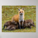 Un renard rouge laisse patiemment ses nombreux kits d'infirmière.