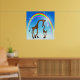 Poster Mère mignonne et bébé Giraffe & Arc-en-ciel