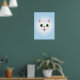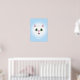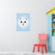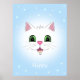Drôle mignon visage de chat blanc avec étoiles sur bleu clair. Le texte peut être personnalisé.