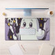 Une affiche charmante et fantaisiste avec un fantôme mignon tenant une baguette magique éffrayante ornée d'un crâne. L'arrière - plan présente un château hanté avec des tourelles et des chauves-souris qui volent, le tout enveloppé dans une teinte mauve douce. Ce délicieux mélange d'éléments mignons et éffrayants en fait un complément parfait à la décoration d'Halloween ou pour apporter un mystère ludique à tout espace.