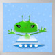 Poster Mignons extraterrestres verts avec vaisseau spatia