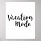 Une affiche mignonne et amusante avec un script manuscrit avec les mots "Mode vacances" en noir.
