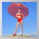 Poster Modèle bikini rétro/parasol rayé rouge
