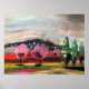 Peinture moderne acrylique, paysage. montagnes et arbres fleuris