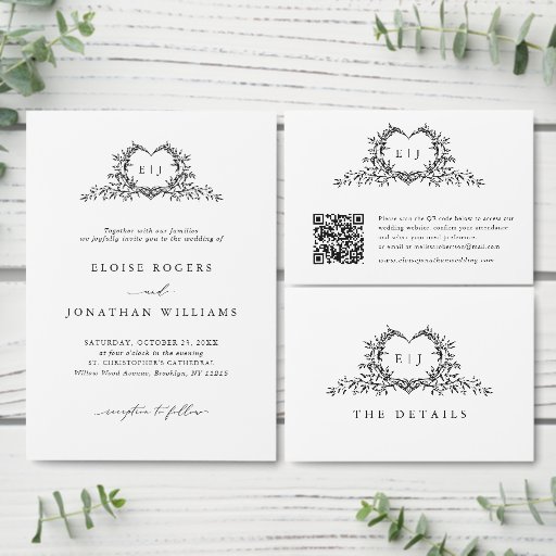Minimalist Monogram Calligraphy Crest WeddingConçu par Bliss Design Studio