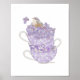 1. Cette oeuvre d'art présente une représentation inspirée de la foi de l'expression "My Cup Runneth Over", avec un trio de tasses qui débordent de fleurs lilas, complétée par un moineau perché au sommet. Magnifique à avoir dans une salle de bain ou une cuisine.