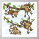Les T-shirts, sacs, tasses, cartes, autocollants, porte - clés, coussins, journaux, mousepads, et autres vêtements et cadeaux de singes sont assortis de quatre mignons singes bruns qui balancent des branches d'arbres et mangent des bananes contre un ciel bleu.