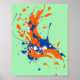 Une affiche design avec design de peinture d'art expressionniste abstraite éclaboussée de couleurs orange et bleu contre un arrière - plan vert menthe. Arty et funky, ce design est coloré et vif.
