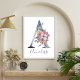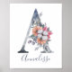 Poster Monogramme A Nom Fleur d'eau Bleue