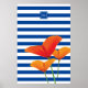 Le coquelicot orange et rouge de Californie s'ajoute aux rayures bleues et blanches profondes pour un style d'été chic et audacieux, élégamment complété par un monogramme encadré dans un petit carré bleu foncé et classe. ♡ Idyllfire