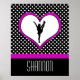 Une affiche mignonne avec une pom-pom girl à l'intérieur d'un coeur rose contre un arrière - plan de polkadot noir et blanc. Customisez-le, ajoutez votre nom ! ©gollygirls.com