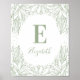 Poster Monogramme de bébé floral rustique. Pépinière vert