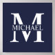 Monogramme personnalisé et cadeaux de nom avec monogramme blanc personnalisé dans le style de police serif classique avec boîte de nom au milieu du monogramme sur arrière - plan bleu marine. Parfait comme décors de maison, cadeaux de ménage, cadeaux de vacances pour la famille, les jeunes mariés et plus.