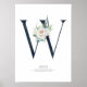 Poster Monogramme lettre W Fleurs blanches et feuillage