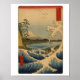 L'imprimé japonais Ukiyo-e montre une vue du Mont Fuji de Satta Point dans la baie de Suruga, avec des vagues de rupture au premier plan. Titre : La mer au large de Satta, Suruga (Traduction) Artiste : Ando, Hiroshige Année : 1859