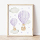 Ajoutez la touche finale à la nurserie de votre bébé ou à la chambre de votre enfant avec ces magnifiques impressions d'art ! Le design présente une montgolfière violette, un ours, un lapin, la lune, les nuages et les étoiles.