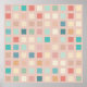 Motif géométrique de carrés multicolores dans une palette de couleurs rose, corail, turquoise, vert, jaune et beige.