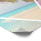 Poster dans les tons rose et bleu, avec des photos de plages et de ciels en été.