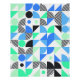 Cette affiche présente un motif géométrique abstrait avec des lignes et des formes dans les tons noir, bleu et vert sur le blanc. Disponible en téléchargement numérique pour un usage personnel seulement ! Toute utilisation commerciale sous quelque forme que ce soit est strictement interdite !