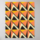 Un motif géométrique transparent avec des formes triangulaires répétées disposées dans une grille précise. Le design associe des tons chauds pêche-orange, jaune doré, beige crème et sections noires audacieuses, créant un contraste saisissant. Chaque triangle est superposé de lignes nettes et pointues et de gradients subtils, donnant un sens de profondeur et de mouvement. La composition globale est symétrique et dynamique visuellement, ce qui la rend idéale pour les applications décoratives modernes.