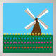 Un moulin à vent au milieu de fleurs de tulipe jaune bleu et rose. Ce design semble vraiment efficace sur ces Poster