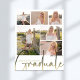Ce design comprend un simple modèle d'invitation de diplôme de photo, une photo photo d'image élégante bannière diplômée, avec la calligraphie simple or moderne, typographie de script tendance, idéal pour la verticale du lycée ou de l'université, un invitation de la fête de graduation, un étudiant principal minimaliste design minimaliste, de grandes félicitations, avec texte or et arrière - plan blanc, et une police de script sophistiquée