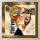 Cette affiche murale cool présente un tableau numérique original de Leslie Sigal Javorek qui est un portrait surréaliste, qui ravira les amateurs de musique, les esprits tordus, et pour tous les chats cool qui se sentent "dans le groove"!