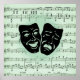 Le talent artistique prend de nombreuses formes et quand ils s'unissent, il est spectaculaire. Les masques de théâtre grecs de comédie et de tragédie se trouvent sur une feuille de musique