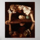 Artiste Caravaggio 1597-1599 Huile sur toile 110 cm × 92 cm (43 po × 36 po) Galleria Nazionale d'Arte Antica Narcisse est une peinture du maître baroque italien Caravaggio, vers 1597-1599. Il est situé dans la Galleria Nazionale d'Arte Antica à Rome. Il s'agit d'une des deux seules Caravaggios connues sur un thème de la mythologie classique, bien que cela reflète les accidents de la survie plutôt que la réalité historique. L'histoire de Narcisse, racontée par le poète Ovid dans ses Métamorphoses, est celle d'un beau jeune qui tombe amoureux de sa propre réflexion. L'histoire était bien connue dans les cercles des collectionneurs, comme le cardinal Francesco Maria Del Monte et le banquier Vincenzo Giustiniani, dans lequel Caravaggio se déplaçait à cette époque. L'histoire de Narcisse a été particulièrement attrayante pour les artistes (ou du moins ceux qui ont peint pour les goûts instruits de patrons tels que Giustiniani et Del Monte), pour des raisons expliquées par le théoricien de la Renaissance Leon Battista Alberti : "l'inventeur de la peinture...Est-ce que Narcisse...Qu'est-ce que la peinture mais l'acte d'embrasser par l'art la surface de la piscine ?" Le tableau transporte un air de mélancolie : la figure de Narcisse est enfermée dans un cercle avec sa réflexion, entourée d'obscurité, de sorte que la seule réalité est à l'intérieur de cette boucle qui se regarde. Tommaso Stigliani, critique littéraire du XVIe siècle, a expliqué la pensée contemporaine selon laquelle le mythe de Narcisse "démontre clairement la fin malheureuse de ceux qui aiment trop leurs choses". Texte de Wikipedia