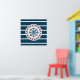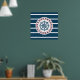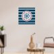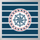 Design nautique avec décoration de boussole en forme ronde sur bleu et blanc rayé arrière - plan