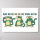 3 Singes Sages - N'Entendez Pas De Mal, Ne Voyez Pas De Mal, Ne Parlez Pas De Mal. Avec trois mignonettes vert avec des graphiques en chimpanzé bleu et jaune / beige.