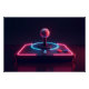 A sleek, futuristic arcade joystick glowing with neon red and blue accents on a dark background, capturing the nostalgic yet modern vibe of classic gaming in a neon-lit style.