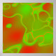 Un motif d'art abstrait de néon vert et rouge avec des éclaboussures d'orange donne à cette image colorée un look presque sci-fi.