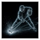 A striking neon sketch of a hockey player in motion against a dark background captures the energy and speed of the athlete with detailed lines and sparks flying as the skate hits the ice.